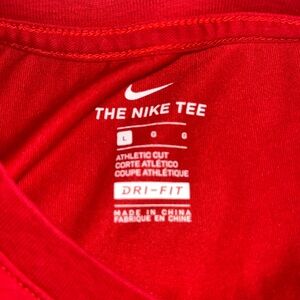 Crafted to keep up with active kids, this Nike Youth Athletic Cut Dri-Fit T-Shirt is perfect for basketball players and beyond. The red, crew neck tee features a prominent Nike logo, short sleeves, and is designed to ensure comfort and breathability during play.