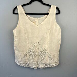 J. Crew 100% Linen Mens Button Up Shirt Size XL Subtle Tan Stripes