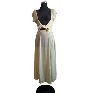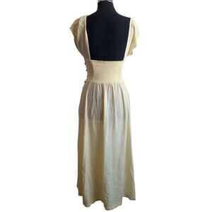 FREE PEOPLE The Getaway Midi Maxi Dress Smocked Cut Out Cotton Yellow Size XS