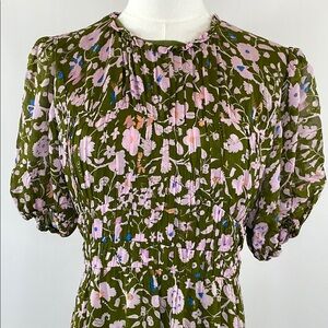 Delicate florals gracefully blossom across this refined Diane von Furstenberg dress, featuring soft fishbone pleats and light, billowy puff sleeves for an effortlessly romantic look.