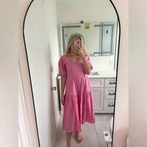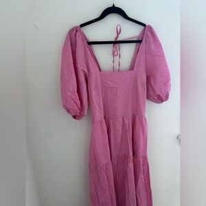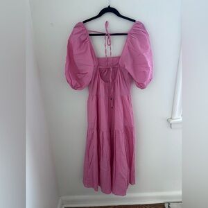Moon River Pink Open Back Puff Sleeve Midi Dress