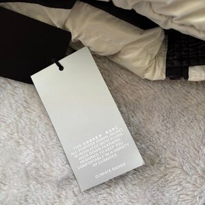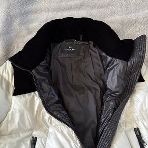 Chic puffer jacket by Andrew Marc in black and white. Fun color way with soft plush fabric on top and around neck. Duck down feather filled. Retail $400. Perfect to stay toasty warm in the cold winter months.