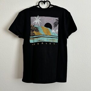 Hurley Black Tropical Golden Waves Sunset Palm Tree Graphic Tee Size XS