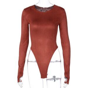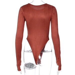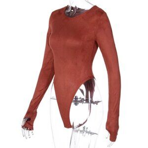 New Red Long Sleeve Thong Back High Cut Leg Bodysuit