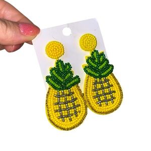 NWOT Yellow/Green Pineapple Beaded Earrings