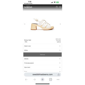 Women's Swedish Hasbeens Handmade Brassy High Sandals Size 38 White Sandals