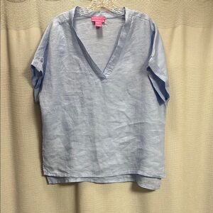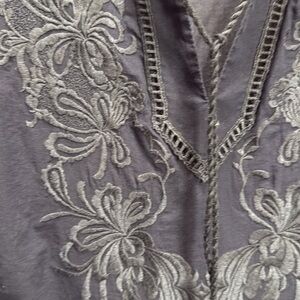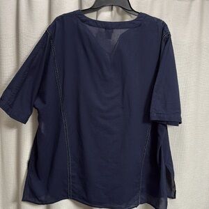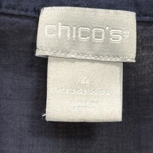 Chicos Embroidered Tunic top Women’s SZ 4/20-22 Navy Y neck cotton EUC summer