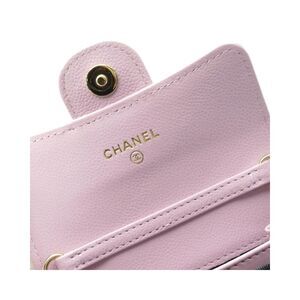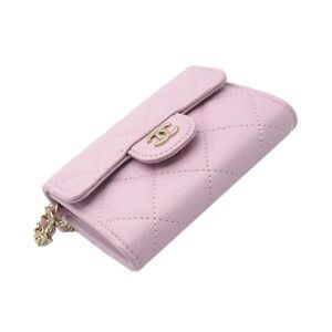 Pre Loved Chanel CC Quilted Caviar Flap Card Holder on Chain Women Pink
