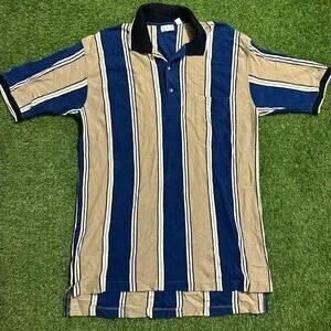 Vintage King Size Vertical Stripe Polo Shirt