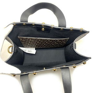 Crafted from a blend of PVC and leather, this bag exudes luxury and durability.