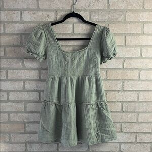 Flowy midi w/ puffed sleeves + handkerchief hem