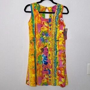No signs of wear. This Super High Quality Tropical pull on style knit skort is A Line in Shape with side pleats and has no pockets. The fabric is an awesome stretch fabric that 92% Polyester & 8% Spandex and a little thicker than most shirts.