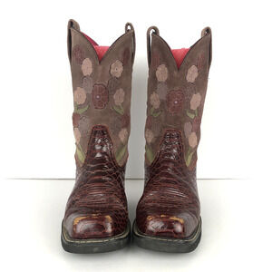 ARIAT Suede Snake Floral Boots Women's Sz 8B Maroon Purple Cowgirl Square 16263