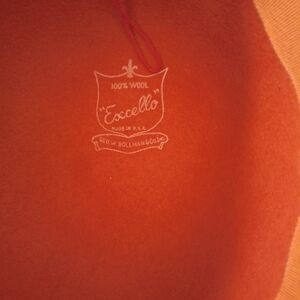 orange wool brim hat by Adolfo. the hat is topped off with a wide ribbon band. pre-owned