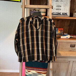 EUC Madewell women’s Larsen blazer plaid jacket size XXS. This blazer is in like new condition! Brown oxford plaid with light pink stripes within! Big open front pockets and back stitching is still in place! Slightly oversized fit IMO. Check photos for measurements in inches!
