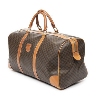 Celine Travel Bag Vintage Large Travel Boston in Brown Macadam Coated Canvas and Gold hardware. The product is in Very Good Condition (AB).