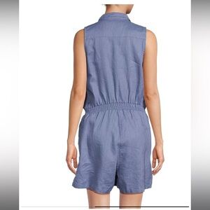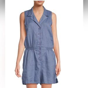 Saks Fifth Ave Linen Romper Size XL Blue Chambray beach coastal gauzy po…