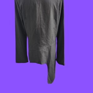 The Hugging Kisses Black Blazer is a sleek and versatile piece perfect for elevating any look. Featuring a modern asymmetrical zip and clean tailoring, this blazer combines edge with elegance. Crafted from a soft, stretch-blend fabric (73% polyester, 22% rayon, 5% spandex), it provides a comfortable, flattering fit. Fully lined for smooth layering. The long sleeves include a subtle slit for easy cuffing. Like new, never worn.