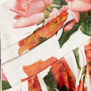 NWOT Commission Fanny Pleated Floral White/Multi Satin/Jacquard Midi SkirtM $805