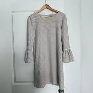 J. Crew Gray Sheath Dress with Bell Sleeves Medium size black and white cotton