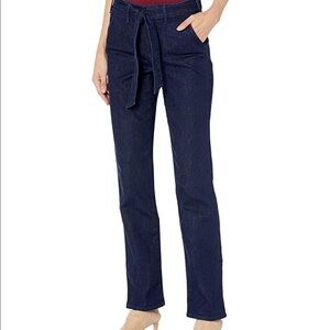 Enclosed elastic waistband. Logo rivets. Fixed raw edge cuffs with logo taping. Tummy control stretch denim. Front and rear pockets. NWT