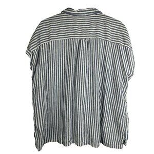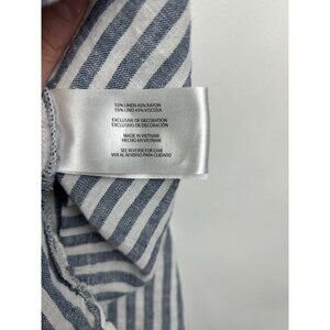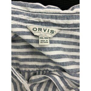 Orvis Women's Button-Up Short Sleeves Linen Blend Shirt, Blue Strip XXL