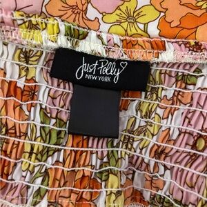 Has some small holes around the under arms from being pinned. Has some restitching on the straps of neckline as shown. Does not have a size on the tag but guessing this will fit size large. No stains, tears or odors.