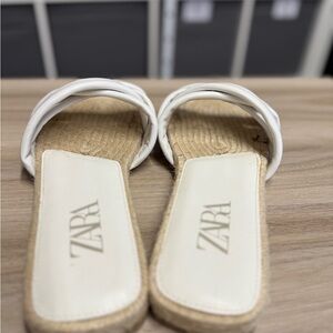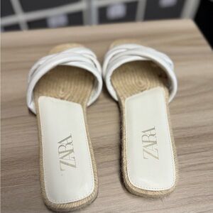 Zara Women's White Criss Cross Leather and Jute Slides Sandals