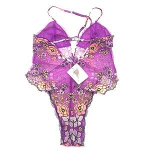 Savage X Fenty Juicy Purple Flower Poppy Print Mod Poppy Lace Teddy Lingerie