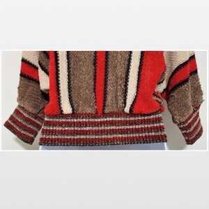 Vintage 80’s Vivanti Sweater Womens Small Knit Striped Batwing Red Brown White