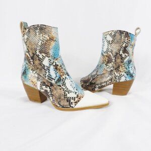 Matisse DESIRE Leather Snake Print Cowboy Western Style Boots White Toe NIB Sz 6