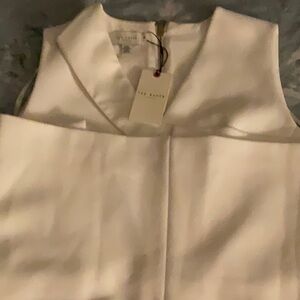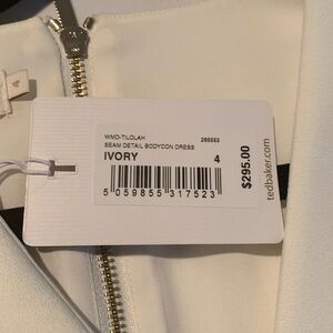 This elegant cream midi dress by Ted Baker London showcases a chic pencil silhouette with a stylish wrap and subtle slit, perfect for both work and casual occasions. Its refined design and smooth fabric ensure a polished appearance, making it a versatile addition to any wardrobe.
