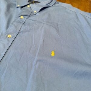 Ralph Lauren Men's Feather Weight Twill Light Blue 4XLT Yellow Pony. Slightly mark on front bottom of shirt near opening. See pics.