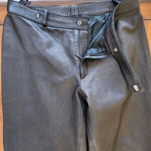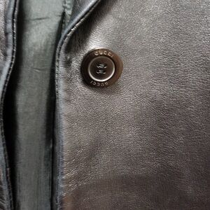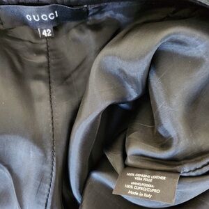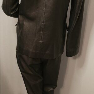 Vintage black Gucci suit. Lambskin leather excellent condition. Pants have never been worn. Suit will fit a us size 4/6