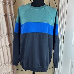 Love Sticth blue & cream stripped sweater jacket with pockets Size Large