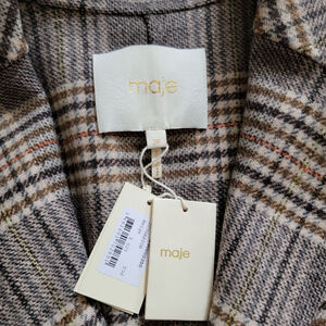 Maje Garion Plaid Wool Blend Blazer Nuetral Collared Women's 36 NWT
