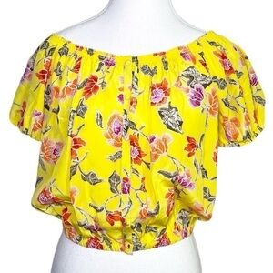 Cupcakes and Cashmere Blue and White Floral Print Crop Baby Doll Square Neck Top