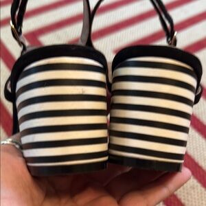These elegant sandals by Betsey Johnson feature a striking combination of black and purple, with floral embellishments that add a touch of sophistication. The T-strap design and adjustable ankle straps ensure a comfortable fit, making them perfect for any occasion.