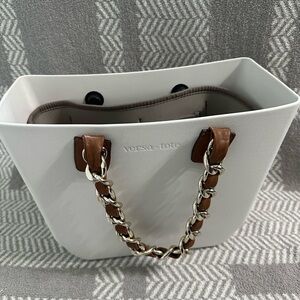 Versa Tote White and Brown Tote Bag with Leather Handles