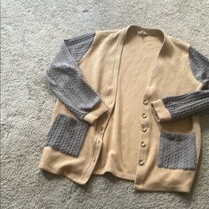 Elevate your wardrobe with this chic tan and gray sweater. Perfect for any occasion, it combines comfort and style effortlessly.
