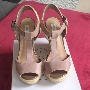 Steve Madden Tan Wedge Sandals with Ankle Strap