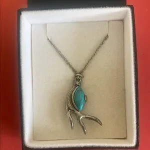 Elegant silver antler pendant necklace featuring a striking turquoise stone.