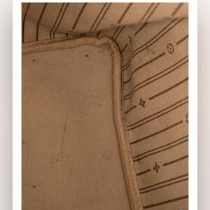 The inside is mostly clean with some marks on the bottom, there is some peeling on the inside pocket, and some wear at the corners. Straps and side straps are in good condition. Does not come with dust bag.