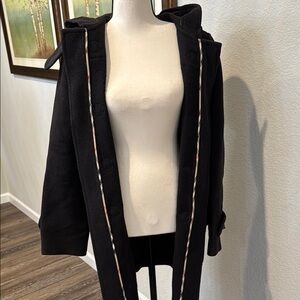 Stay warm and stylish with this elegant black toggle coat. Perfect for any occasion, this coat combines functionality with a timeless design. It has no discolorations, stains or any damage. It fits medium. #477
