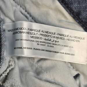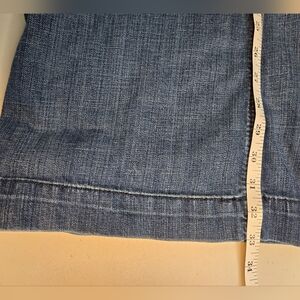 Ariat trouser fit jeans, size 34R. Medium wash, fading and whiskering, no distressing or destruction. Pockets front and back, belt loops all around, zip and double button closure.