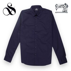 Scotch & Soda Mens LS Stretch Cotton Slim Fit Shirt in Dark Navy Blue with Logo Embossed Buttons and Rounded Tail. NWOT, no flaws.