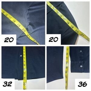 Measures flat 20 x 32". Standard 20" shoulders across. 36" arms from mid-collar to cuff.