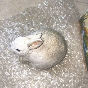 Easter basket bunny Stone critters vintage Ceramic white Easter bunny realistic
