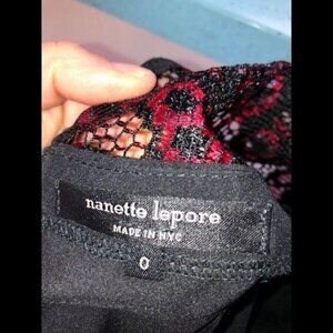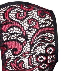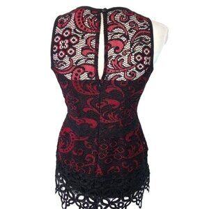 Nanette Lepore Top Womens Size 0 Black Red Lace Crochet Zipper Back Made In USA
