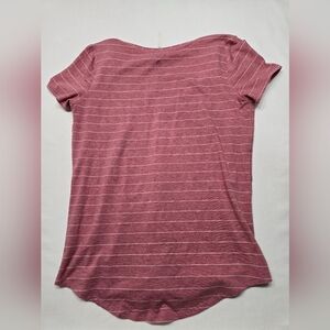 Elevate your casual wardrobe with this stylish pink top. Featuring a subtle striped pattern, it's perfect for any occasion. Size 4. Preowned great condition.